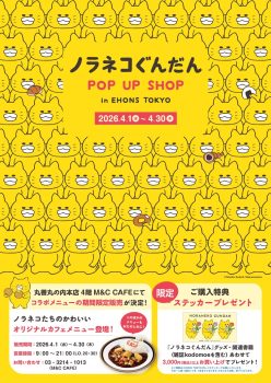 2026年3月24日 2026ノラネコぐんだんPOPUP_ポスター_3rd こちらも読みたいわが子の成長が絵本作りのヒントになっていたのかも。夢眠ねむさんがtupera tuperaのおふたりと対談。【夢眠ねむの絵本作家に会いたい!・7】 こちらも読んで おすすめ記事 【UP用】MC丸の内-ノラネコぐんだんコラボメニュー おすすめ記事 tikinraisu おすすめ記事 onigiri1top おすすめ記事 クレヨンのように濃く描ける!ママ・パパの声から生まれた「子ども用色鉛筆」 おすすめ記事 箱の中の男は、いったい誰? 衝撃の話題作がついにコミックスに。『箱の男』コドモエCOMICSより発売! おすすめ記事 【レシピ】食パンをちょこっとアレンジ 親子で楽しむ!春のおうちパンパーティー こちらも読みたい「板垣李光人くんはそっと甘いものをくれる優しい子」「中村倫也さんは初めてでもどこかで会った気にさせてくださる方」【板垣李光人さん&中村倫也さん 初共演インタビュー】 PREV