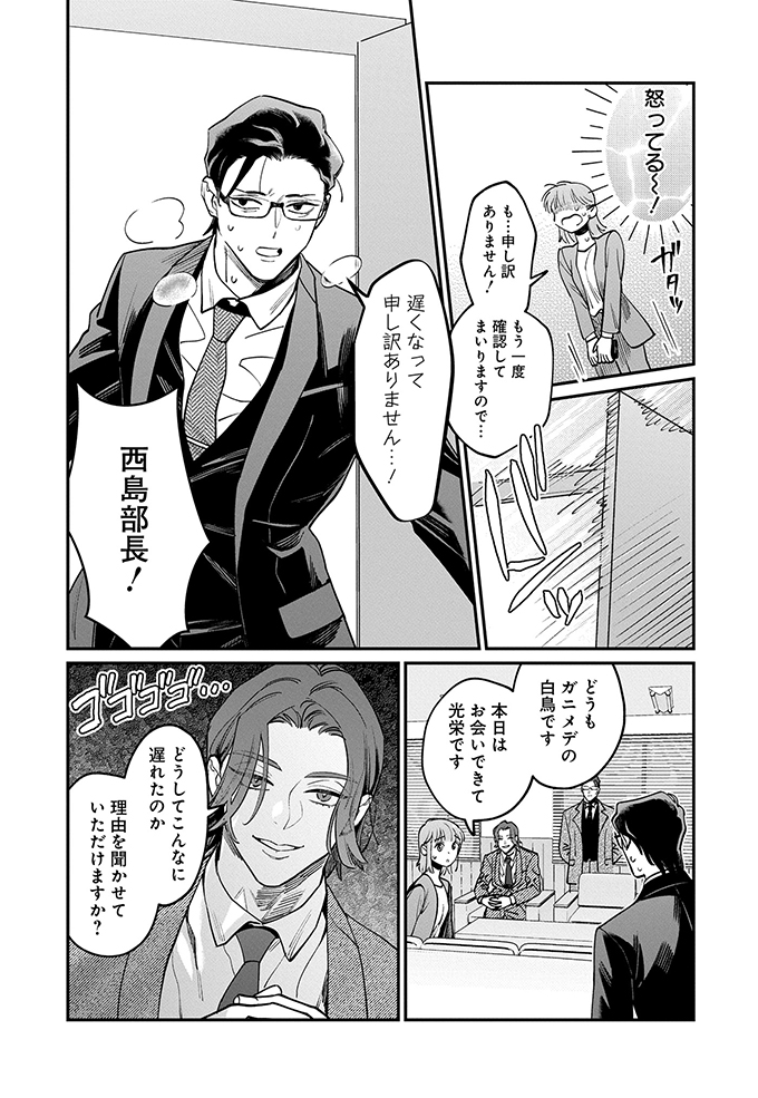 一見ブラックでコワモテの部長と、その元で働く部下たちが、仕事や育児にいそしむ物語。新しく提携する会社の社長との打ち合わせに送れてしまった西島部長。その理由を聞いているうちに、先方の社長の様子が変わって……。