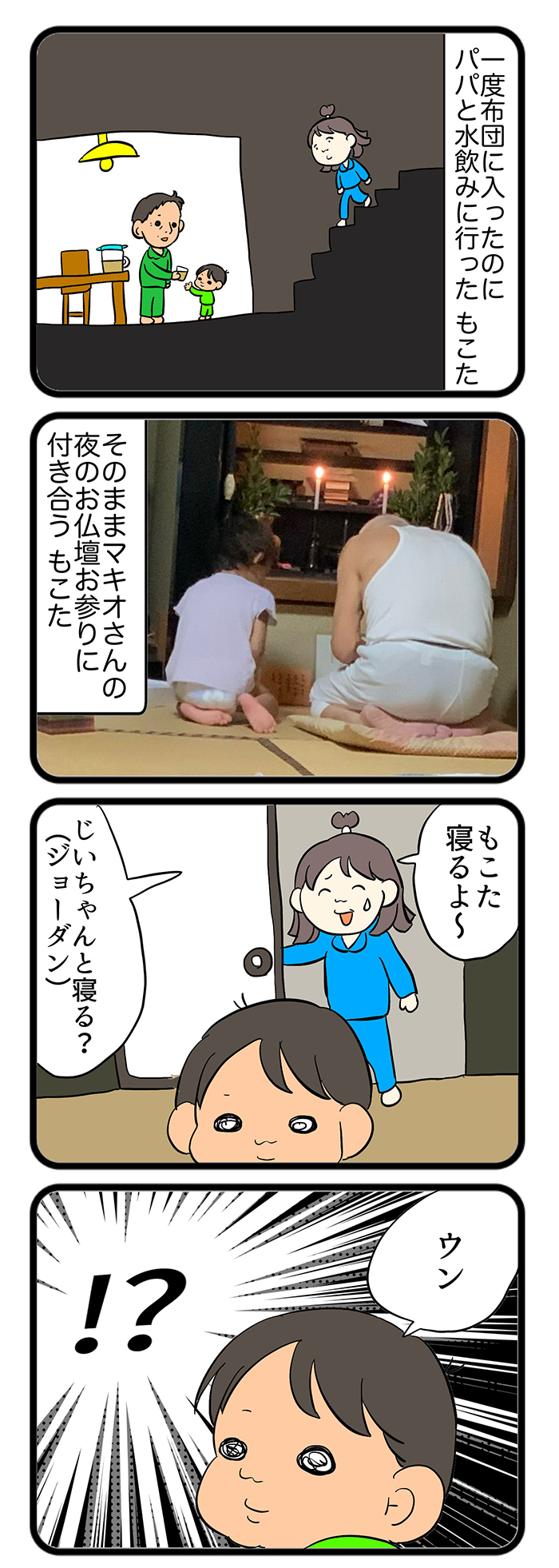 9位 義父・マキオさんと寝ると言い出した2歳のもこた。本当に大丈夫か、夜中に見てみたら…【しぶしぶ同居したら義父が最高だった件・74】