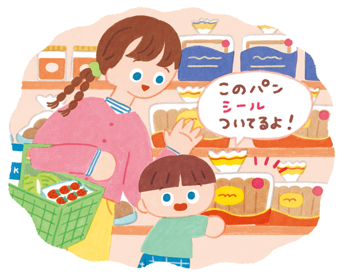 子どもと一緒にヤマザキ商品取扱店舗へ。「春のパンまつり」対象商品を求めて売り場を探検。家族で力を合わせ、宝探しのように点数シールを集めます。