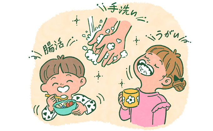 感染症対策は『ここぞ』というときだけがんばるものではなく、何よりも習慣化が大切。すべてを完璧にこなそうとすると大変なので、ママパパと子どもたちが楽しみながら一緒に取り組んで、継続することを目指しましょう。例えば『うがい、手洗い、腸活!』など、リズムに乗せた合言葉をつくって日常のルーティンにしちゃうのもいいですね。腸活で免疫のバランスが整うと、花粉症の改善も期待できますよ」