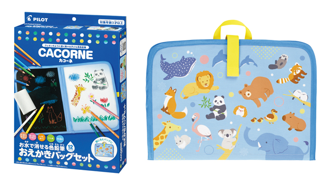 お水で消せる色鉛筆 おえかきバッグセット 3080円 セット内容:色鉛筆12色、おえかきバッグ、 色鉛筆ケース、消去用布