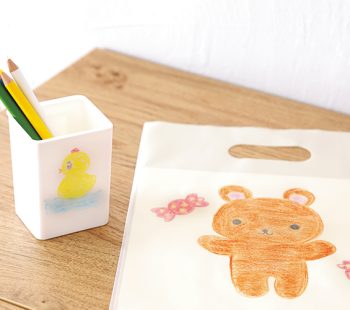 プラスチックやビニール袋にも描け、水拭きで落とせるから、何度でもお絵描きができます。