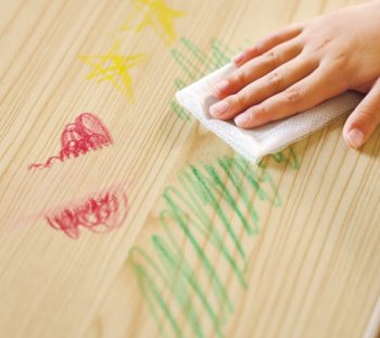 水拭きで色を落とせるから、机などにはみ出して描いてしまっても消すことができます。