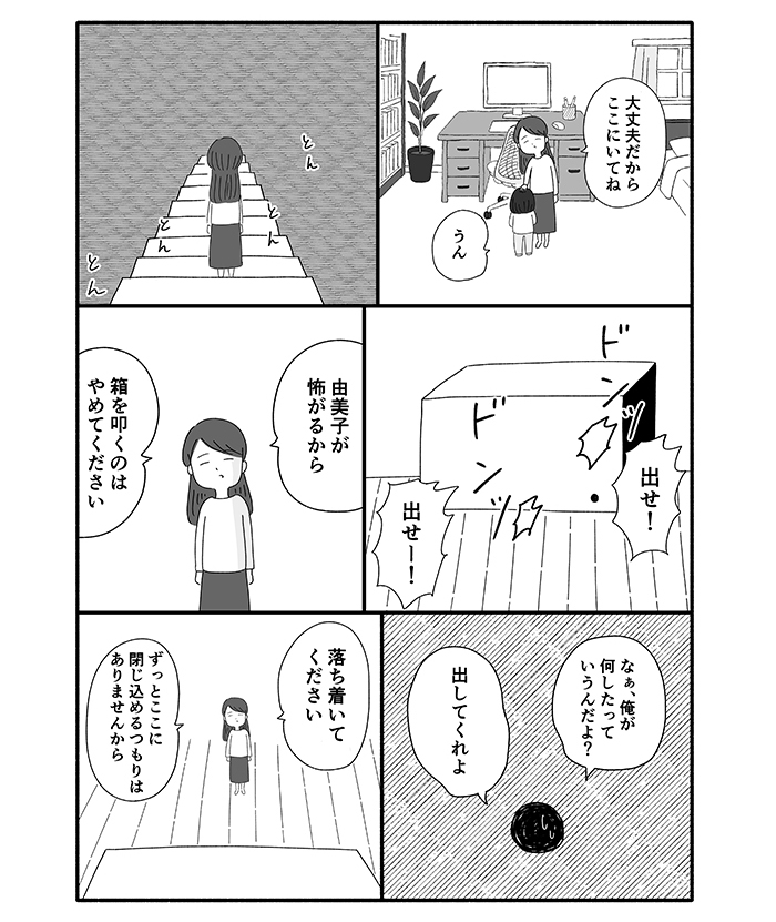 2025年10月3日 「生きたまま静かにさせたい…。でもどうすれば…」そんなときに、書店で見つけた1冊の本に書いてあったこと【箱の男・15】 こちらも読みたい俳優・向井理さんインタビュー「幼いころのサッカーで身につけた、全体を俯瞰で見る力が、今の演技に活きています」 漫画家・都会さんの連載第15話。ある家庭の18年間を描いたストーリー。 これまでの話はこちらから 第15話 12次のページ こちらも読んで 【箱の男】の一覧を見る 前回の話を読む 「あなたがある日突然この世から消えても、誰も困らない」。知らない男と家族になった日のこと【箱の男・14】 この連載を最初から読む こちらも読みたい俳優・香椎由宇さんインタビュー「運動してばかりの幼少時代に祖父が読み聞かせてくれた絵本は、今でも大切に読んでいます」 キーワード:都会 PREV