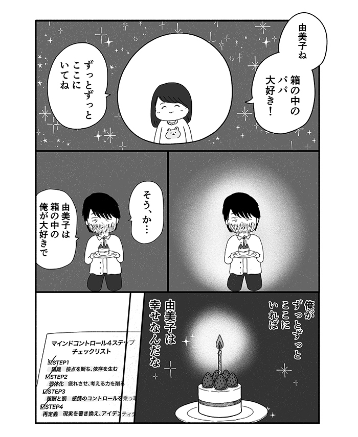 2025年10月17日 ごめんなさい、ごめんなさい、熱風は…やめてください。男は、箱の中で少しずつ支配されていく…【箱の男・16】 こちらも読みたいミュージシャン・俳優 古舘佑太郎さんロングインタビュー。サカナクション・山口さんの言葉で自分は常に恵まれた環境にいたことに気づけた【後編】 都会 漫画家。奇妙なもの、面白いもの、かわいいものに目がない。 著書に『憂鬱どうぶつ(株)』(秋田書店)、『3匹の大人ぶた』(KADOKAWA)、『会社がツライ』(マガジンハウス)他。 X(旧Twitter): @okameid 12 こちらも読んで 【箱の男】の一覧を見る 次回の話を読む 「臨時収入が入りそうなのよ~」箱の男の虐待、監禁を知った女が動き出す…【箱の男・17】 前回の話を読む 「生きたまま静かにさせたい…。でもどうすれば…」そんなときに、書店で見つけた1冊の本に書いてあったこと【箱の男・15】 最新話を読む 「臨時収入が入りそうなのよ~」箱の男の虐待、監禁を知った女が動き出す…【箱の男・17】 この連載を最初から読む こちらも読みたい「パンダやライオンはなぜ、むし歯にならないの?」新刊絵本『1回3分 むし歯にならない絵本』が発売されました。【メイキング&筆記インタビュー】 キーワード:都会 NEXTPREV