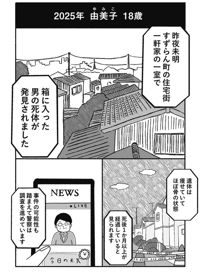 「箱に入った男の死体が発見された」というニュース映像から始まるストーリー。そこから一気に十数年前にさかのぼり、由美子の成長とともに話は進みますが、由美子と殺人事件の接点は?犯人と被害者は誰なのか? そもそも、箱の男とは? その答えを考察しながら読んでいくのが作品の楽しみ方のひとつです。