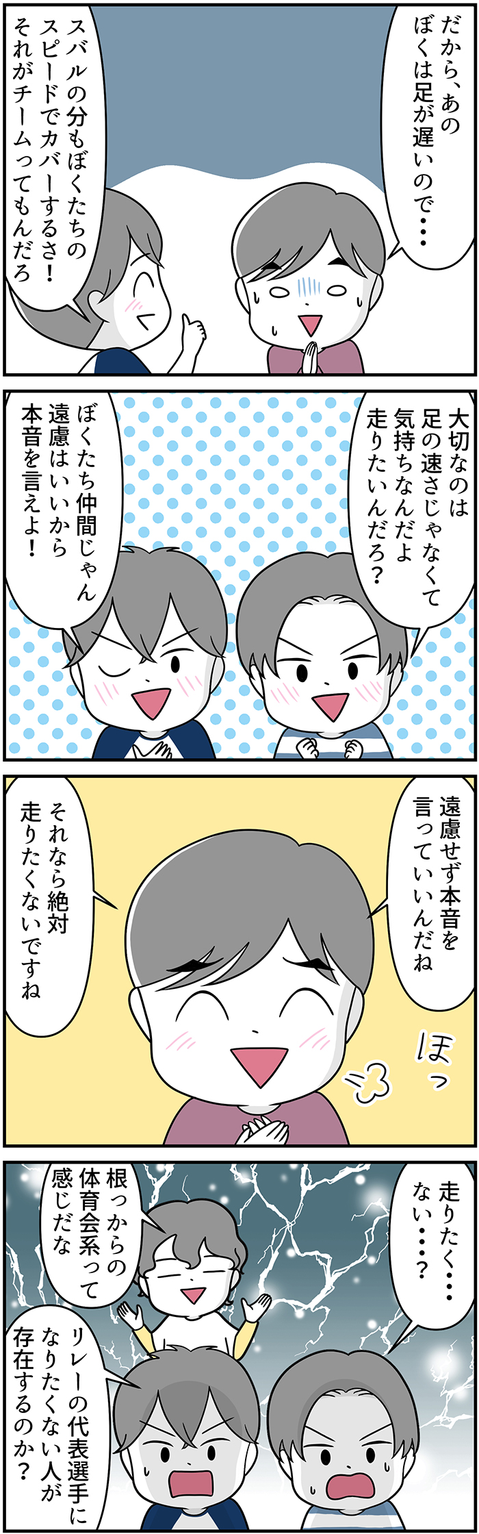 「本音を言っていいんだね」「それなら…」。リレーに誘った友だちは、スバルくんの本音に驚きを隠せず…【自閉症BOY★スバルくん・123】