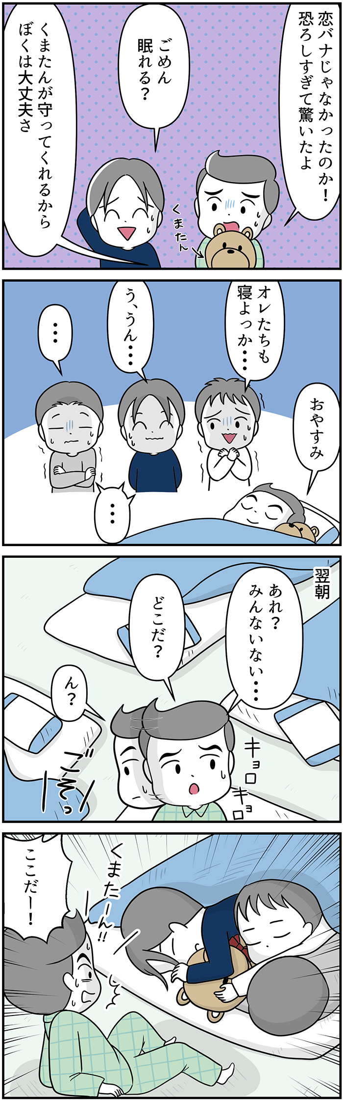 マモルくんだけではなく、みんなまとめて寝かせてくれる、くまたんなのでした。