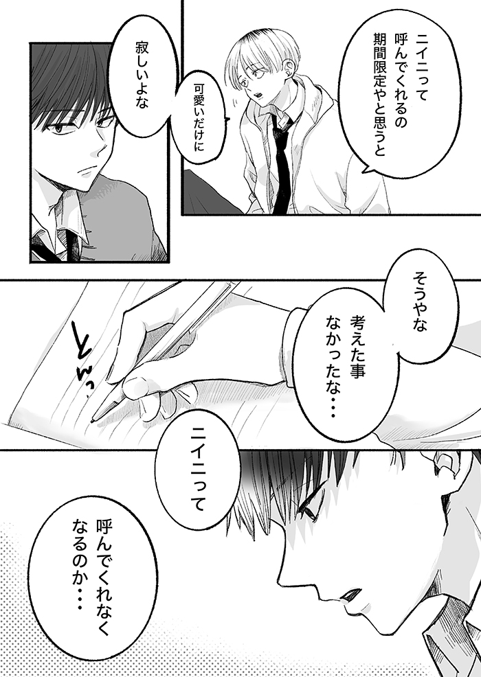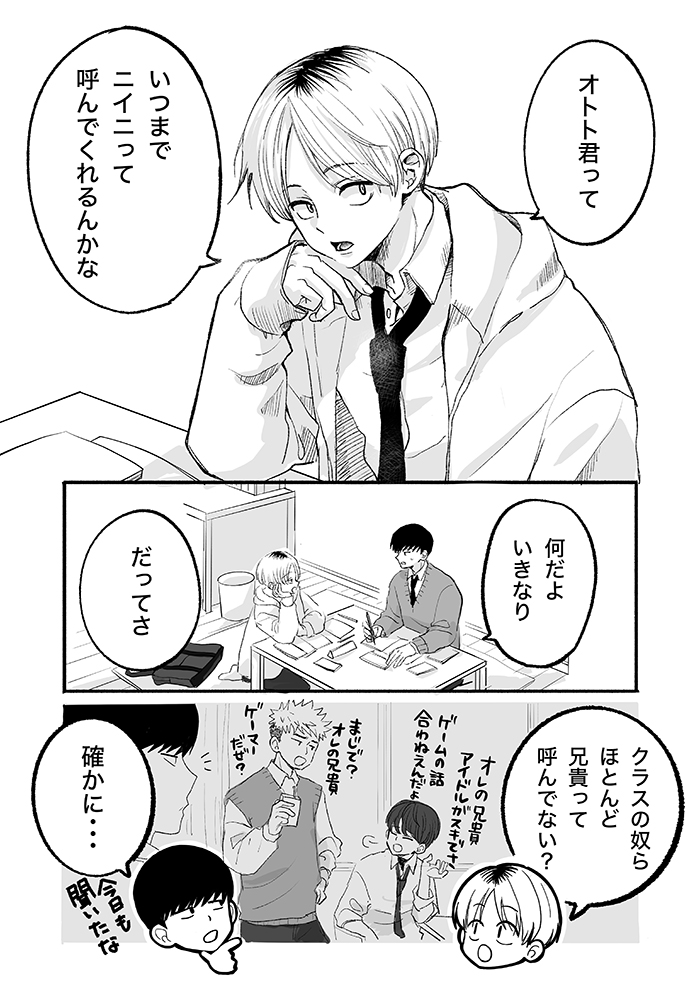 10歳差兄弟のニイニとオトト君。16歳のニイニは弟思いの優しいお兄ちゃんだけど、思春期まっただなかの高校生でもあり……。今回はずっと「ニイニ」と呼ばれたいお話です。