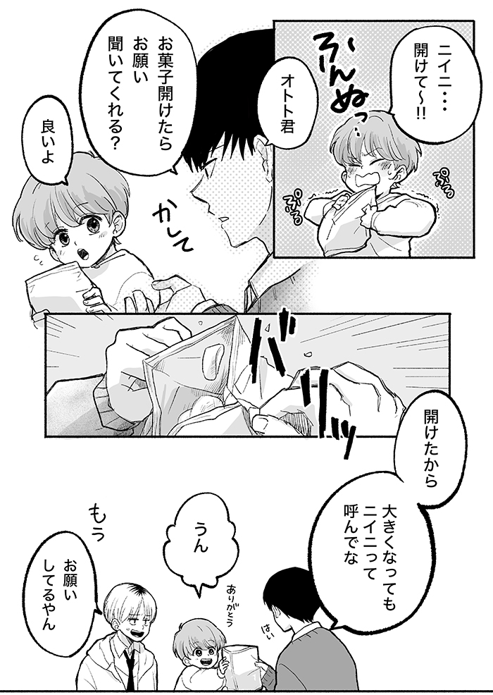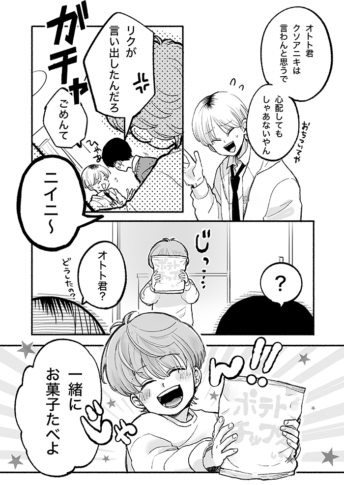 思わず「きゅん」!? ニイニとリクをドキッとさせたオトト君の行動は…?【ぼくのニイニは高校生・47】