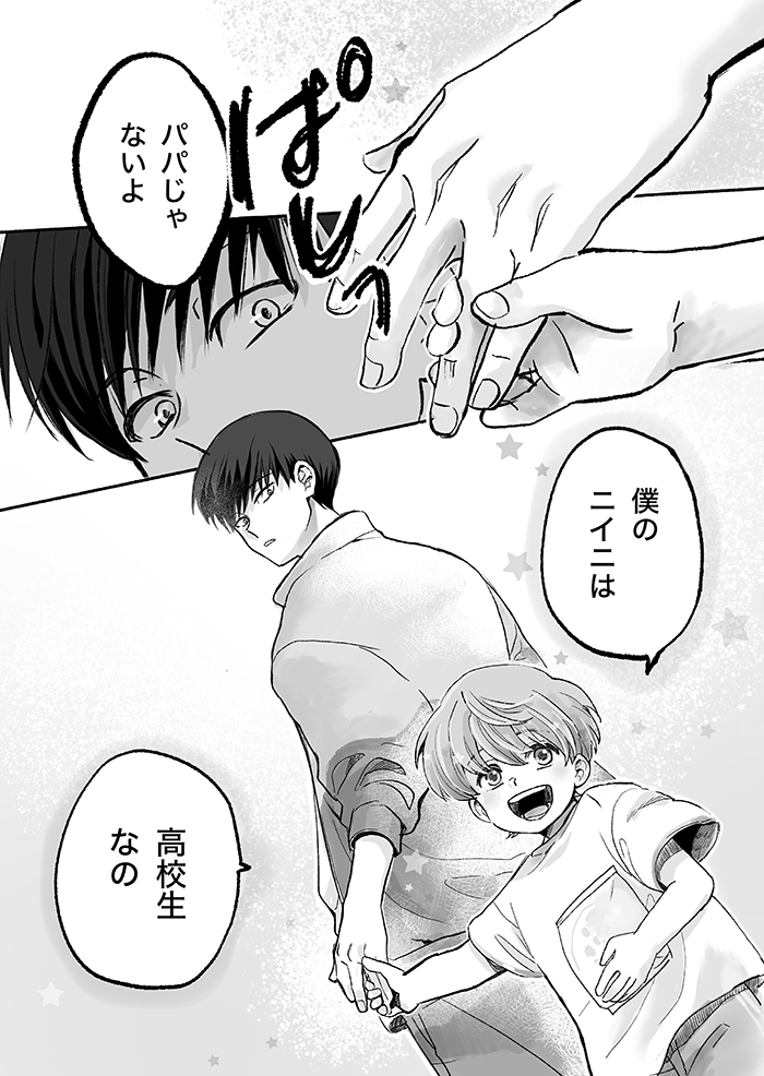 パパに間違えられるお兄ちゃんなんて嫌だよな…。思わず手を離そうとしたとき、オトト君は…【ぼくのニイニは高校生・最終回】