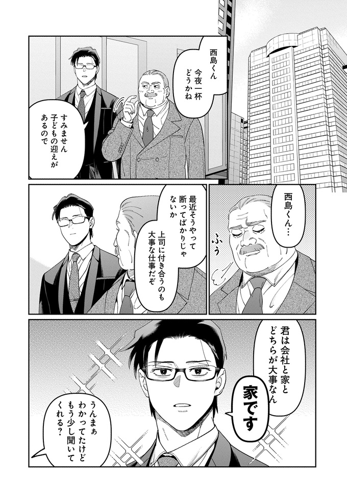 このお話は、上司と部下が、会社✕育児の壁にぶつかりながら、時にはスマートに、時には右往左往しながら、ワークライフバランスにコミットしていくお話。