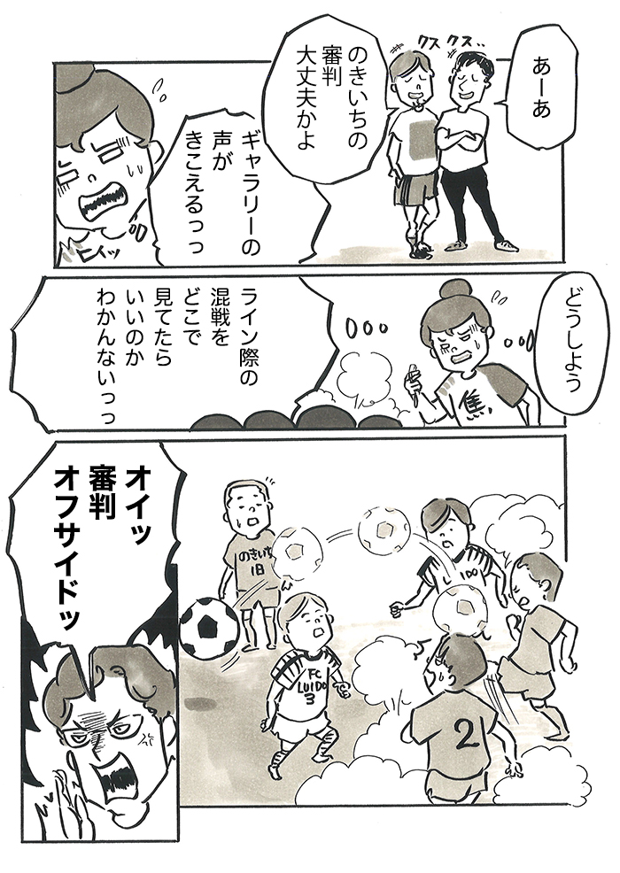 「さっきからファールしてる!」ただよう保護者と選手の殺気。荒れた場の中心にいるのは、審判の私…【サカマンマ~かあちゃんうっかりサッカーコーチになる・26】