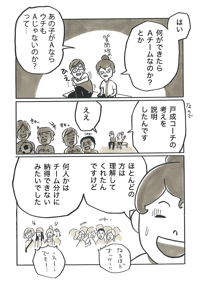 子どもたちのサッカーのレベルで「Aチーム」「Bチーム」を分けたところ、ママ達の間に不穏なムードが…【サカマンマ~かあちゃんうっかりサッカーコーチになる・28】