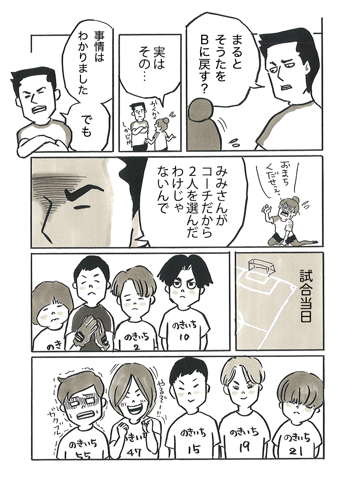 息子がサッカー少年団に入ることになり、お手伝いのつもりで、コーチに手を挙げたところ……!? コーチ、保護者たち、子どもたちのあれこれを描くお話、第30話です。