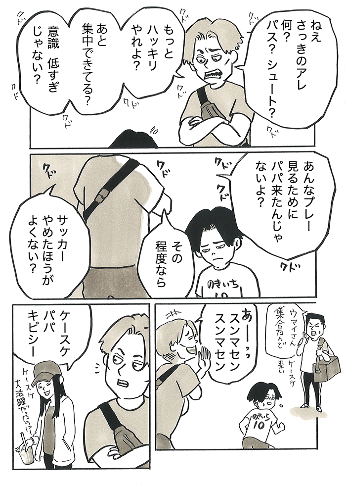 「あんなプレー見るためにパパ来たんじゃないよ?」「その程度ならサッカーやめたほうがよくない?」父親の厳しい声掛けに、選手は意気消沈して…【サカマンマ~かあちゃんうっかりサッカーコーチになる・30】