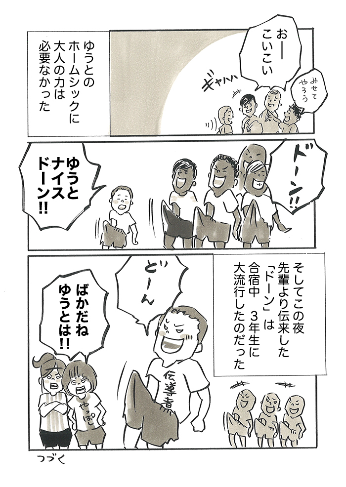 合宿初日の夜、3年生のゆうたが泣き出した。それを見た6年生がやったことは…【サカマンマ~かあちゃんうっかりサッカーコーチになる・36】