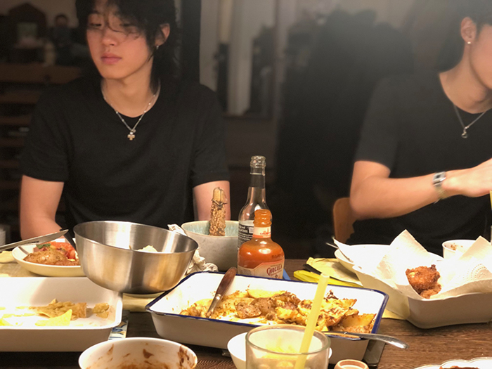 こんなふうに普段作らない料理をダイナミックに作っていく、というのが楽しいところ。夫や子どもの晴れ舞台となるのが家族の日のご飯です。お兄ちゃんたちはチキンフライ、お姉ちゃんはナスの肉詰め、トマトと桃のサラダなど、それぞれ美味しそうなものをググって作ってくれました。