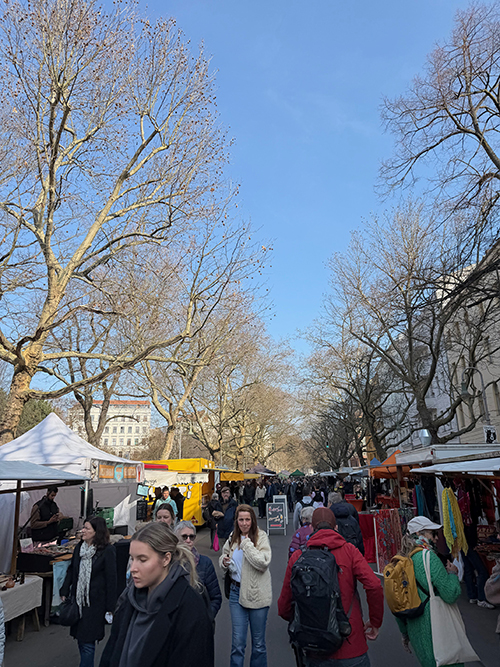 まだ木々は青くないけど、サマータイムを迎え、外のマーケットも賑わってきました。